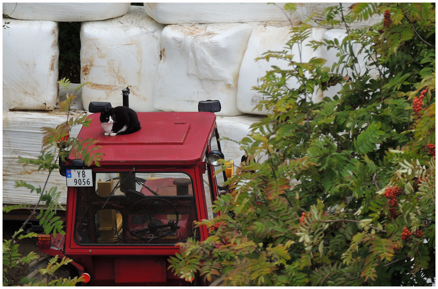 I dag måtte vi ta høl på en balle med høyensilasje pga at vannstanden i Langvatnet e så høy at hestan ikke kan gå på Granholmen å beit. Foresten et supert fòr